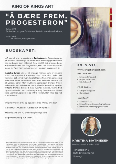 Giclee trykk/kunst trykk: All kunst fra King of Kings art er trykket på 300 grams 100% bomullspapir hvis ikke annet er oppgitt. Blekket som brukes har museumskvalitet. Dette vil si at fargene er av beste og høyeste kvalitet, og taper ikke intensitet før om 80-100 år. Alle giclee trykk er signert og nummerert i et begrenset opplag.