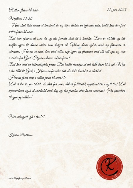 ulmende. Herren er med, dere skal rettes opp igjen og flammen skal stå rett opp og vaie