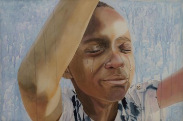 Flott stort akvarell maleri: Motivet er hentet fra misjonsmarken i Afrika i det øyeblikket barnet tok imot Jesus som sin redningsmann. Barnet er fra Kenya.