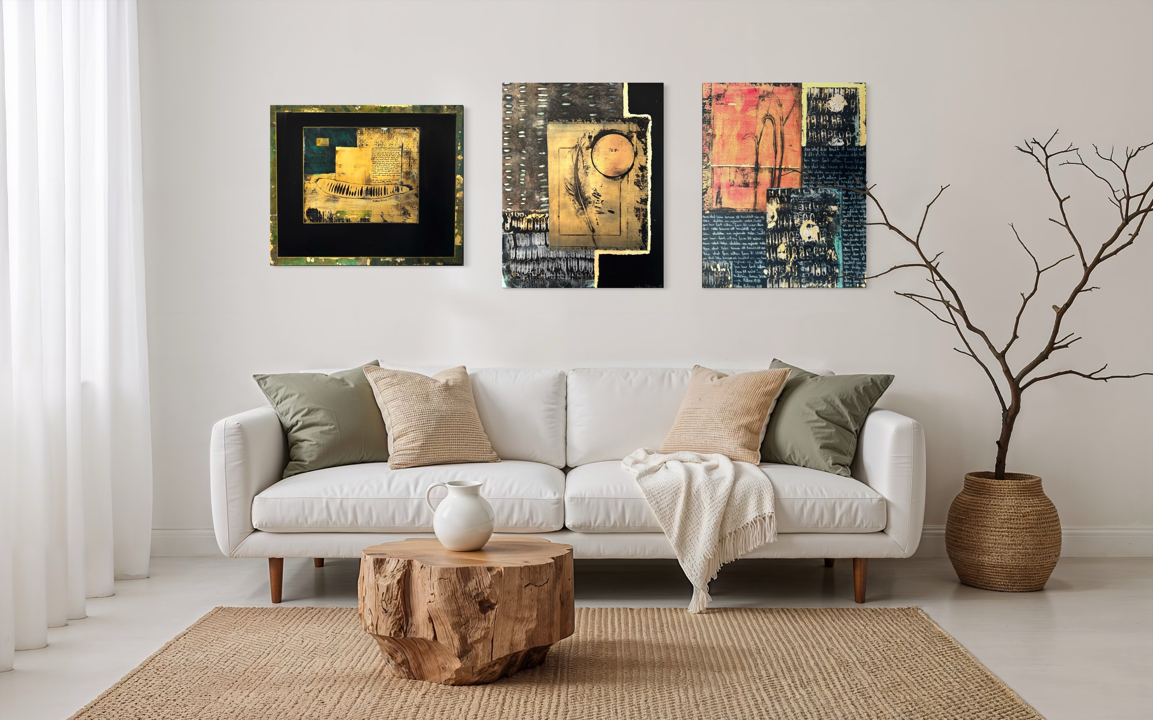 Abstrakt verk, mixed media. Verket er dekket med resin, som et topplag over kunsten. Det gir en fløyelsglatt overflate som skiller seg ut. Les budskapet til verket nedenfor.