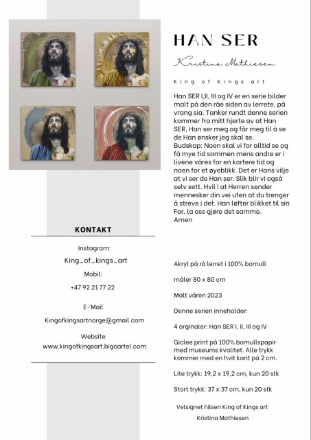 Orginalt verk: Akryl malt på den råe siden av canvaset, derav bagrunns fargen i denne serien av Han SER I,II,III og IV